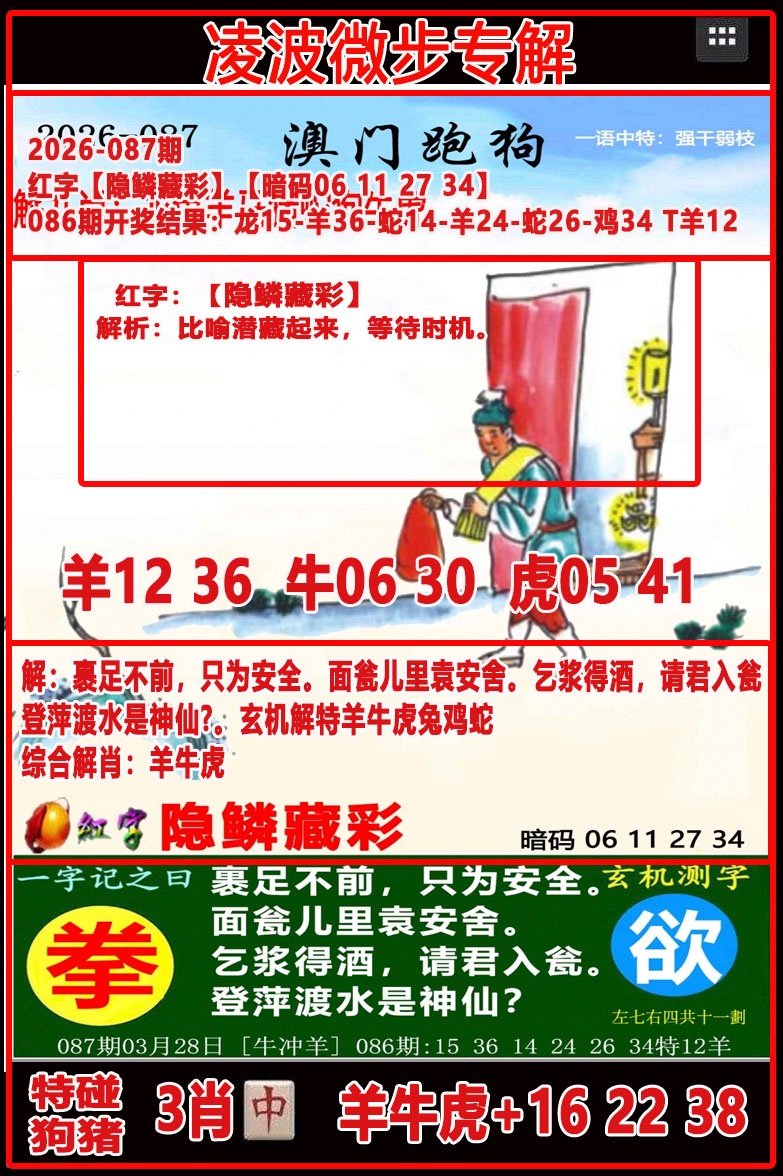 087期 澳门老黄历 【最优心水】 点击查看